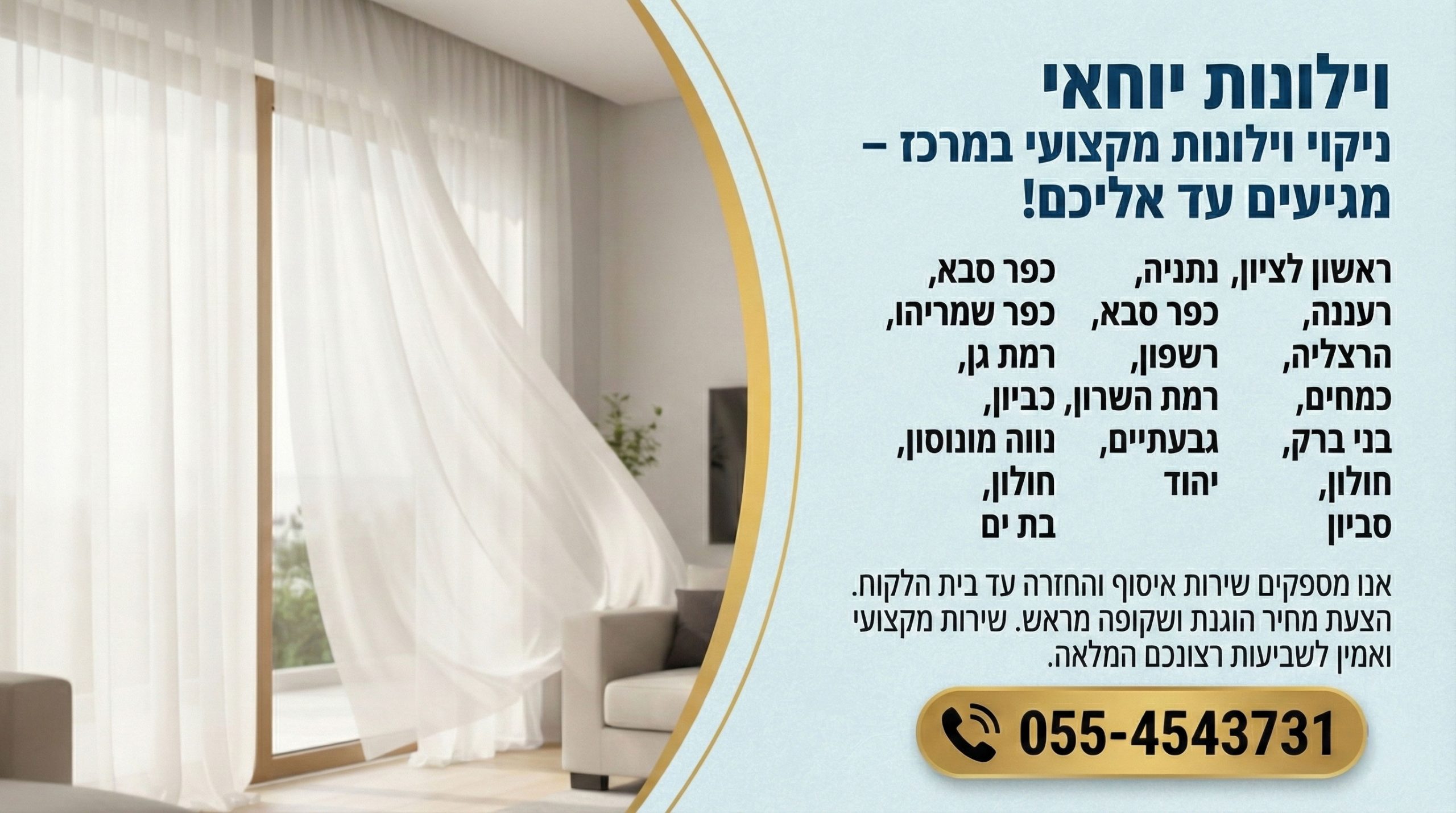 וילונות יוחאי – אזורי שירות לניקוי וילונות במרכז